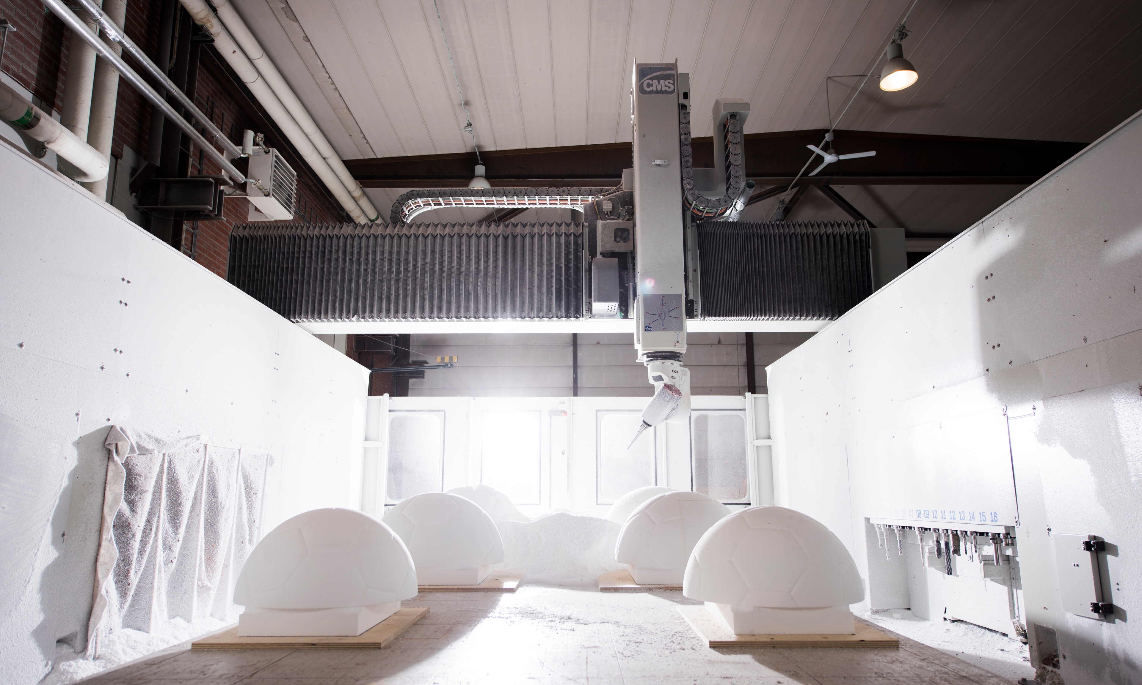 Hjärtat i vår maskinpark består av tre 5-axliga fräsar CMS Poseidon, CMS MX5 och en Bellotti VEGA. Där vår Poseidon tar modeller upp till 25 x 6,2 x 2,3 meter, vår Belotti VEGA tar modeller upp till 20 X 6,2 X 3 meter och i vår MX5 kan vi fräsa modeller upp till 5 x 3,8 x 1,4 meter.